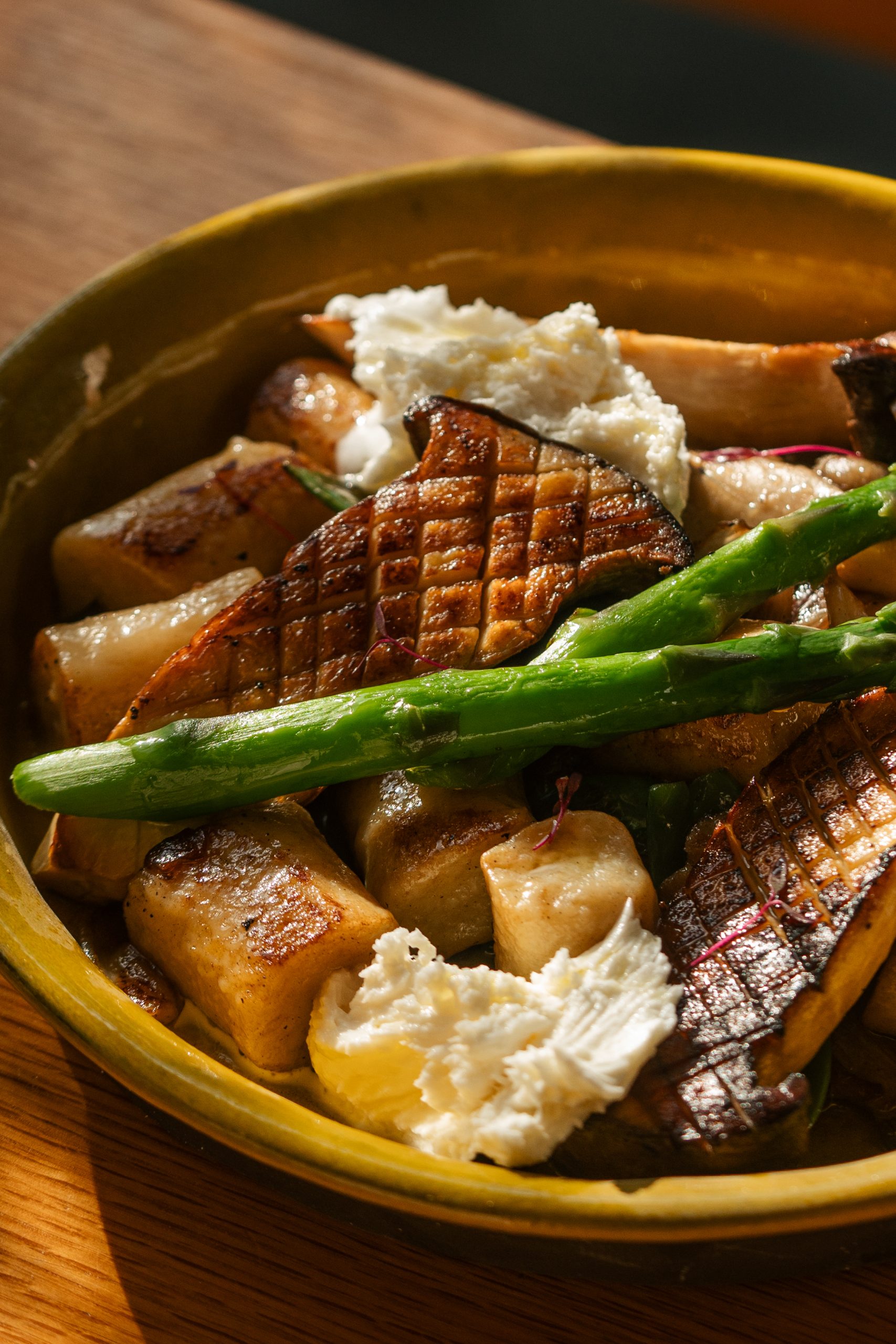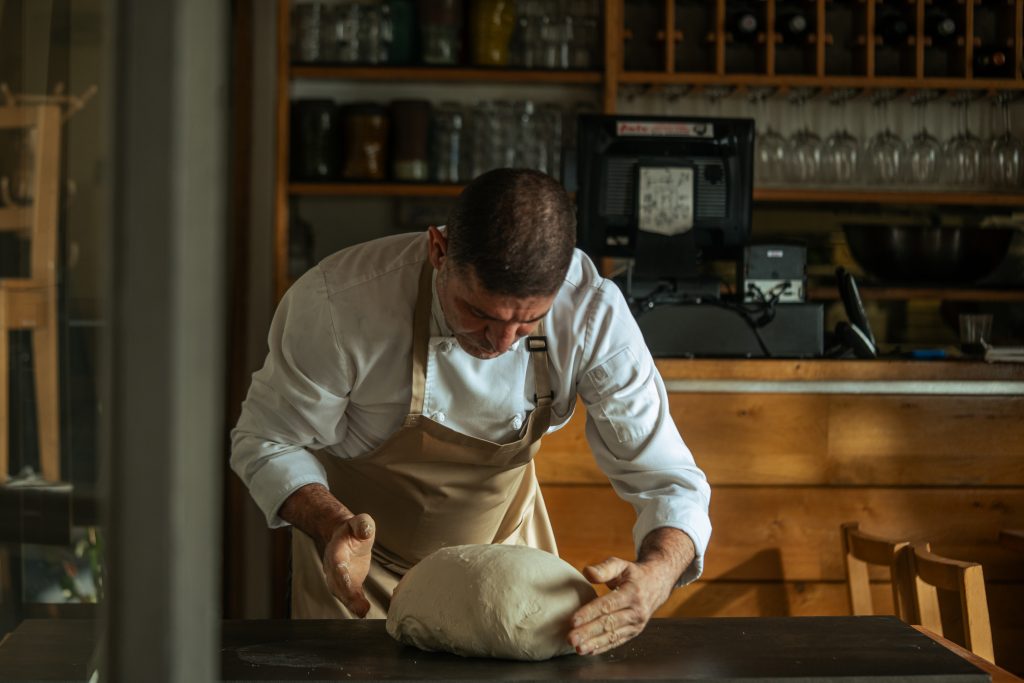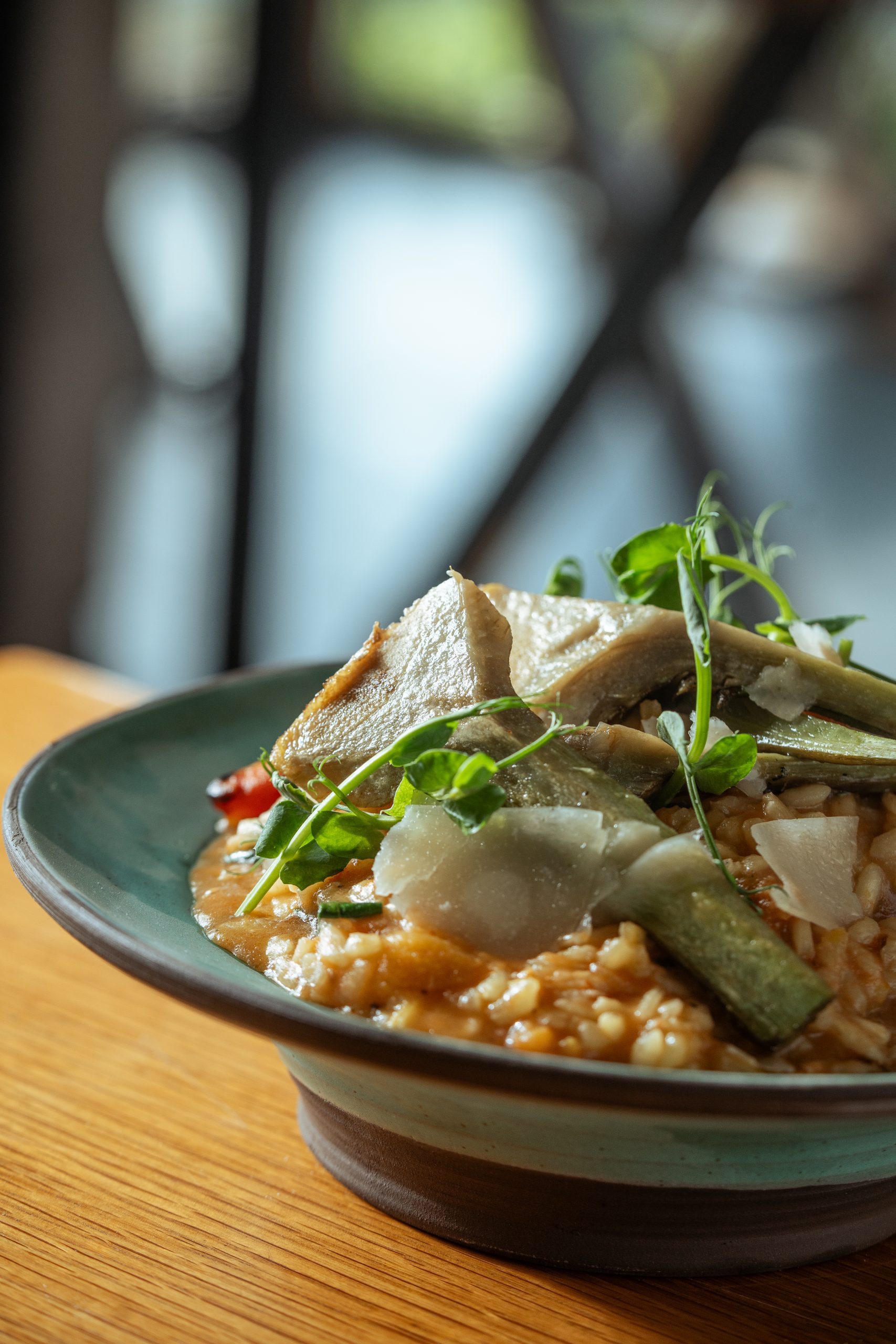 אור רך נכנס פנימה, הגינה צמודה, והחלל הקטן והמדויק יוצר תחושה אינטימית וחמימה- כמו ישיבה שקטה בכפר קטן באיטליה.